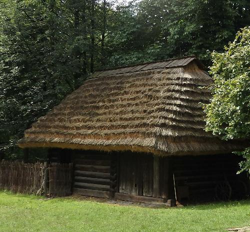 プシュチンスカ・リブニク地方のカミオンキの豚小屋。中流の農家に19世紀前半頃に建てられたもの。 建物は豚舎と馬車を格納庫の2つの部屋で構成されている。豚小屋の壁は丸太組構造であるが、馬車を格納する部分の壁は柱・厚板構造となっている。寄せ棟屋根垂木構造で、藁葺き屋根で葺かれている。