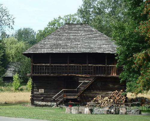 1675年に建てられたボイコビツェ・コシチェルネの領主の穀倉。 2階建ての建物は、石の基礎の上に丸太組み構造で建てられている。丸太組みの端部は、端から伸ばした相描き欠き重ね継ぎで組まれている。寄せ棟屋根は、帯梁で固められた垂木構造で、シングル葺き板で覆われている。正面壁にある外部階段は、1階と2階の部屋につながっている。