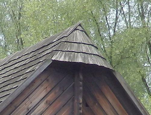 1階建ての穀倉は、シングル葺き板で覆われた、垂木構造の高い棟の入母屋屋根となっている。丸太組み構造と柱・厚板の構造で建てられた壁は、隅は端から延ばされた重ね相欠き継ぎで固められ、石積みの基礎の上の丈のある土台の上に置かれている。穀物倉の屋根の比率は調和のとれた美しいシルエットを持っており、妻側の三角壁は屋根勾配に合わせ板が斜めに張られている。入母屋屋根の妻側の棟端部には、コズベク(kozubek)」と呼ばれる装飾的な屋根材で葺かれたバスケットが置かれている。