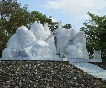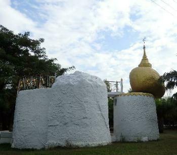 | ゴールデンロックと呼ばれるチャイティーヨ・パゴダ(Kyaikhtiyo pagoda)のミニチュア。本物はヤンゴンからバスで1時間から2時間の場所にある。 | |||